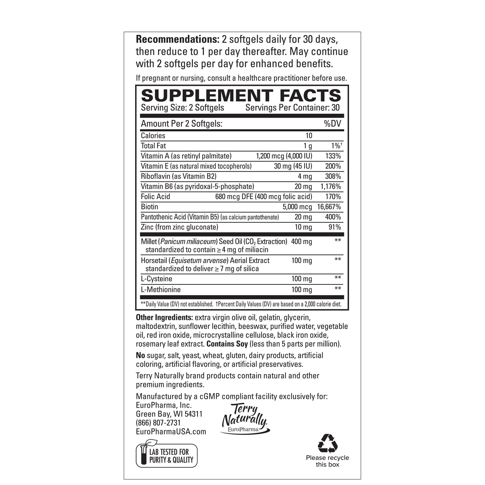| Horsetail (Equisetum arvense) Aerial Extract | 100 mg | ** |
