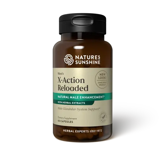 Men’s X-Action® Reloaded combines nutrients to support male reproductive function, sexual performance and enjoyment, prostate health and cardiovascular health. Ingredients in the formula work together to support optimal nitric oxide levels in the body. Nitric oxide relaxes blood vessels to enable optimal blood flow. Efficient blood flow is crucial for healthy male sexual activity and overall vascular health. Icariin, a flavonoid extracted from epimedium, may selectively inhibit phosphodiesterase type V (PDE-5), an enzyme that causes the male sexual response to subside. By blocking this enzyme, sustained activity may be promoted. Icariin also plays a role in increased smooth muscle relaxation and increased blood flow through its actions on cyclic guanosine monophosphate (cGMP) levels and nitric oxide synthase (NOs) activity.