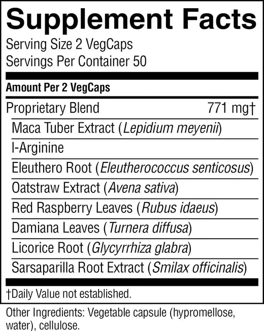 Featuring potent ingredients to facilitate energy and blood flow to reproductive areas. May also improve sexual desire and buffer the effects of stress.